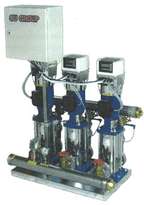 При изменении водопотребления в насосных станциях традиционного типа регулирование подачи осуществляется посредством включения или выключения одного или нескольких насосов. Такие станции требуют использования специальных шкафов управления и больших баков-гидроаккумуляторов, сглаживающих скачки давления.