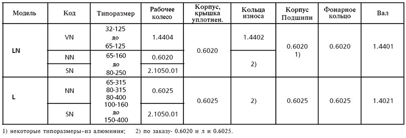 Давление в корпусе: модель LN: до 16 бар при +120 0 С и л и до 13 бар при +140 0 С модель L: до 12 бар при +120 0 С и л и до 10 бар при +140 0 С