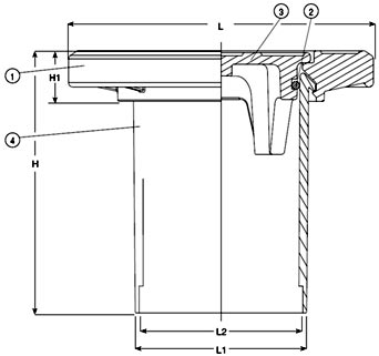 Компоненты:1. Наружная плита2. Кольцо круглого сечения3. Крышка4. Корпус