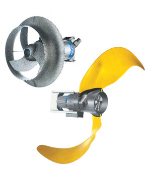 Погружные низкооборотные и высокооборотные мешалки Flygt типа S с двух или трёхлопастными пропеллерами для жидкостей и шлама, содержащие твёрдые частицы.