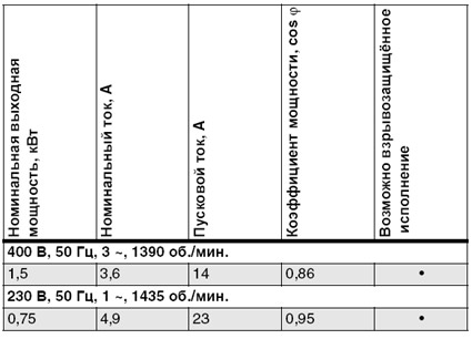 Параметры электродвигателя Частота 50 Гц Класс изоляции F (+155 °C) Изменение напряжения - в непрерывном режиме макс. ± 5% - в повторно-кратковременном режиме макс. ± 10% Неуравновешенность напряжений между фазами макс. 2% Кол-во запусков в час макс. 15