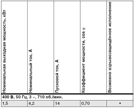 Параметры электродвигателя Частота 50 Гц Класс изоляции H (+180 °C) Изменение напряжения - в непрерывном режиме макс. ± 5% - в повторно-кратковременном режиме макс. ± 10% Неуравновешенность напряжений между фазами макс. 2% Кол-во запусков в час макс. 15