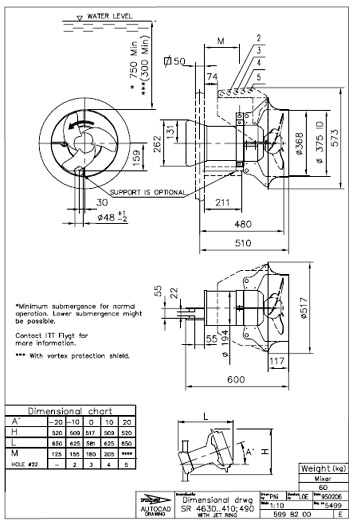 Изделие: Смеситель с прямой передачей и двух- или трёхлопастной крыльчаткой, предназначенный для смешивания жидкостей и шлама, содержащих волокна и твёрдые частицы. Смеситель рассчитан на работу с полным погружением в жидкость.